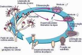 Possuem uma reprodução a partir de metagênese. Nessa reprodução, em uma geração de cnidários a reprodução é assexuada por brotamento, gerando medusas, e na outra geração a reprodução é sexuada, em que são formados pólipos.